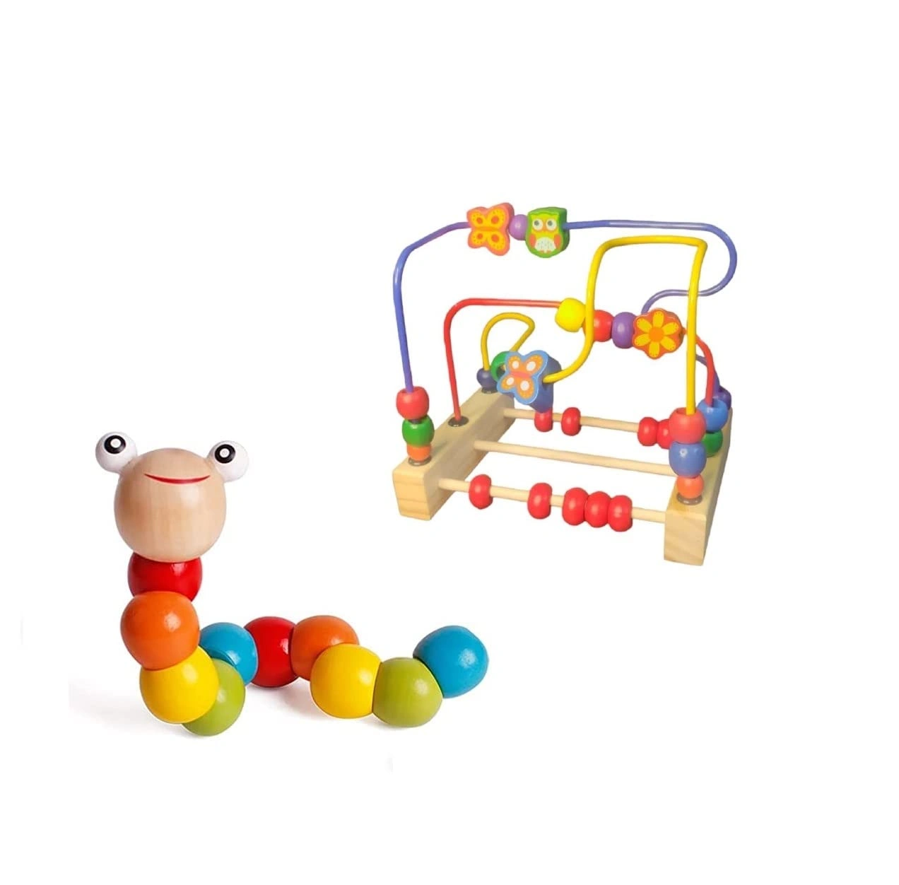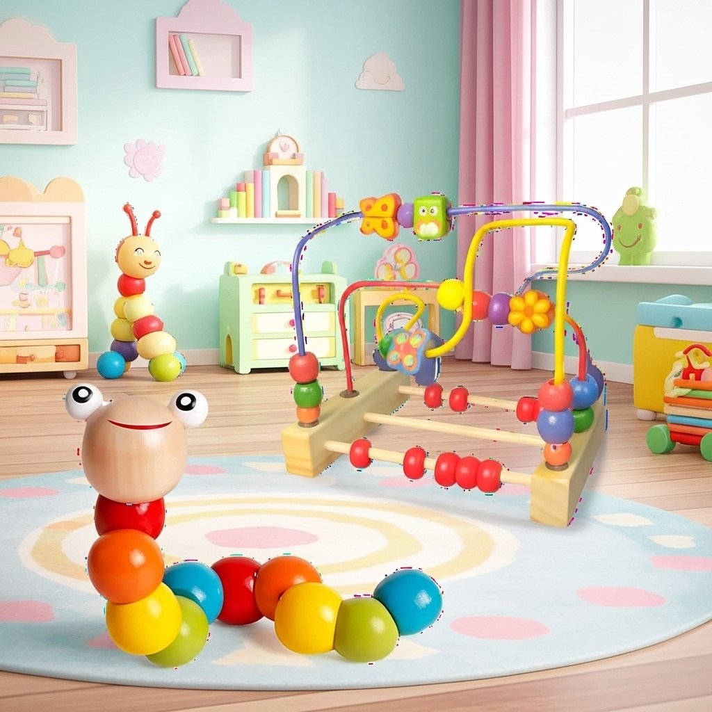 The bead maze toy and caterpillar activity center are portable wooden learning toys. It supports early education with hands-on learning. It improves fine motor skills.