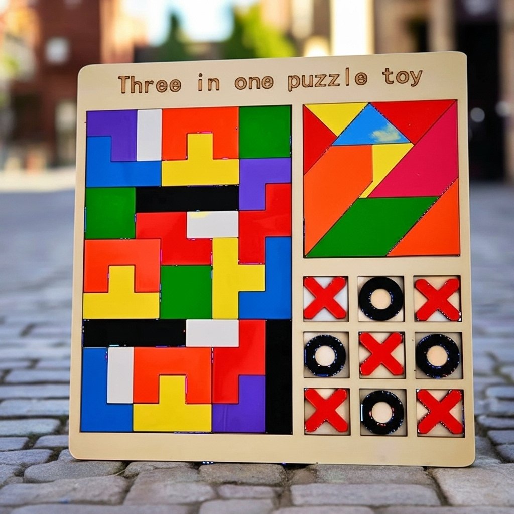 Extraordinary education power becomes your child through the 3-in-1 Wooden Puzzle Game for Kids – Tangram, Tetris & Tic-Tac-Toe Montessori Learning Toy. The collapsed three classic brain games Tangram puzzles Tetris block-fitting challenges Tic-Tac-Toe board for social play assemble the all-in-one wooden activity set.