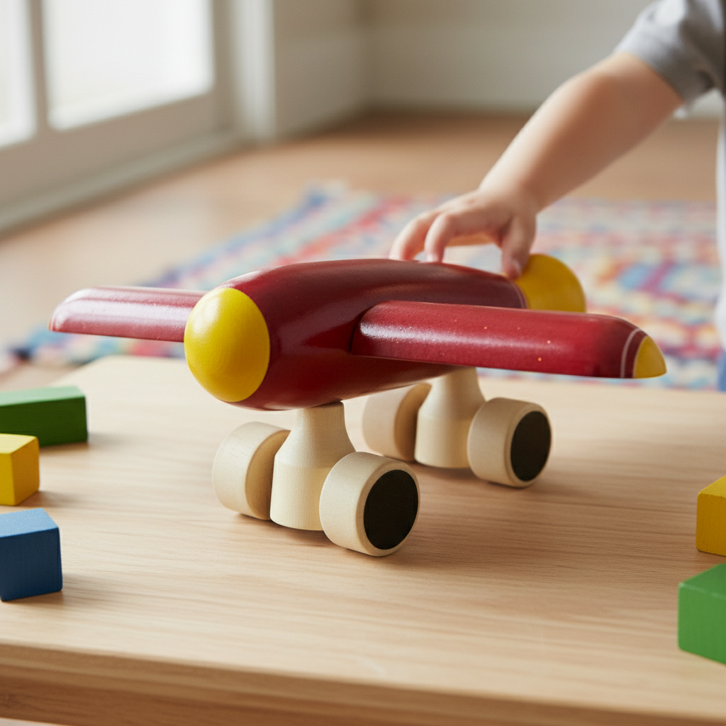Help your children discover the wonders of their creativity by exploring the Channapatna Wooden Airplane Toy – Handcrafted Plane for Kids. Displaying traditional Channapatna woodcraft traditions this handmade airplane boasts sleek edges and functional wheels alongside vibrant yet child-friendly hues.