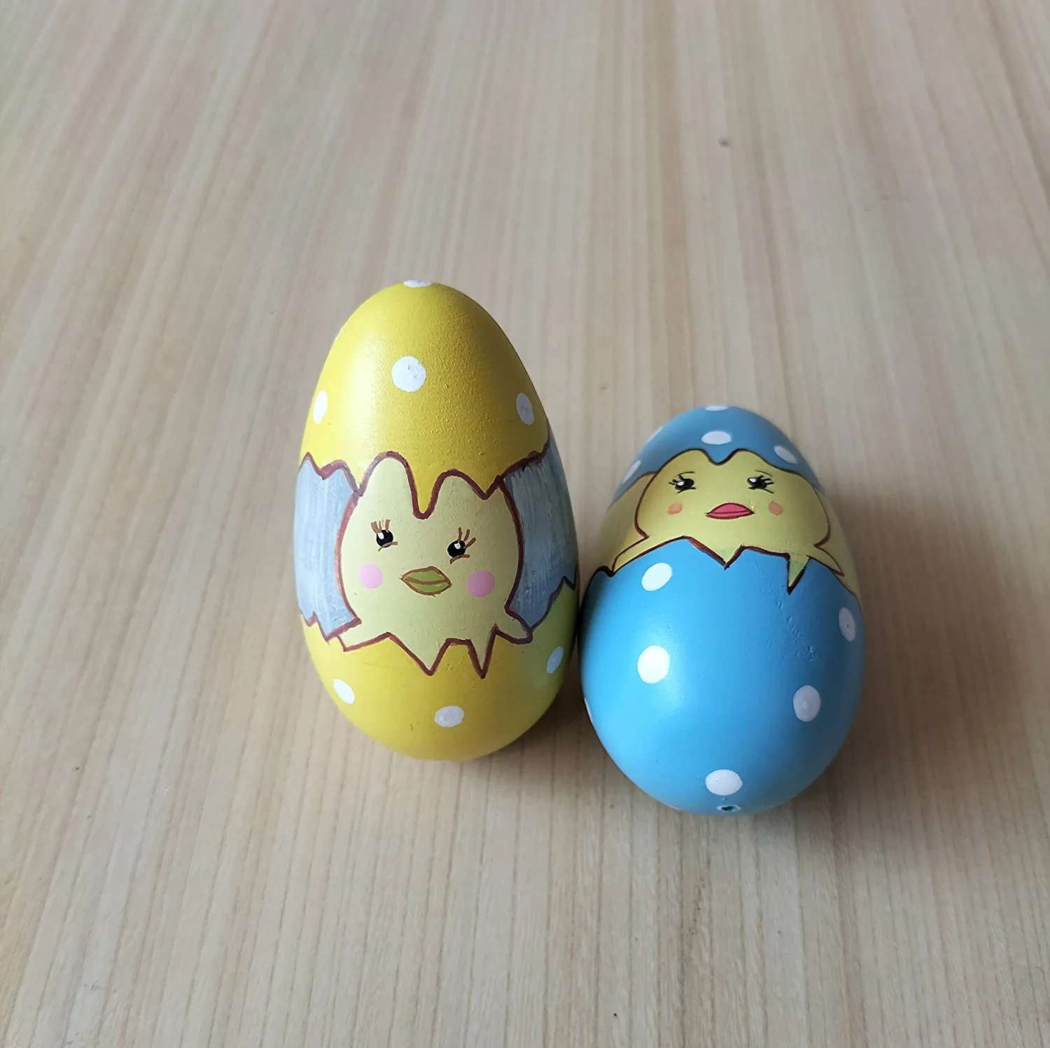 The egg shakers are a thoughtful toy made of natural wood and painted with natural dyes. The artisan takes care to keep the toy smooth so that no scratches or cuts are caused due to any sharp wooden edge.