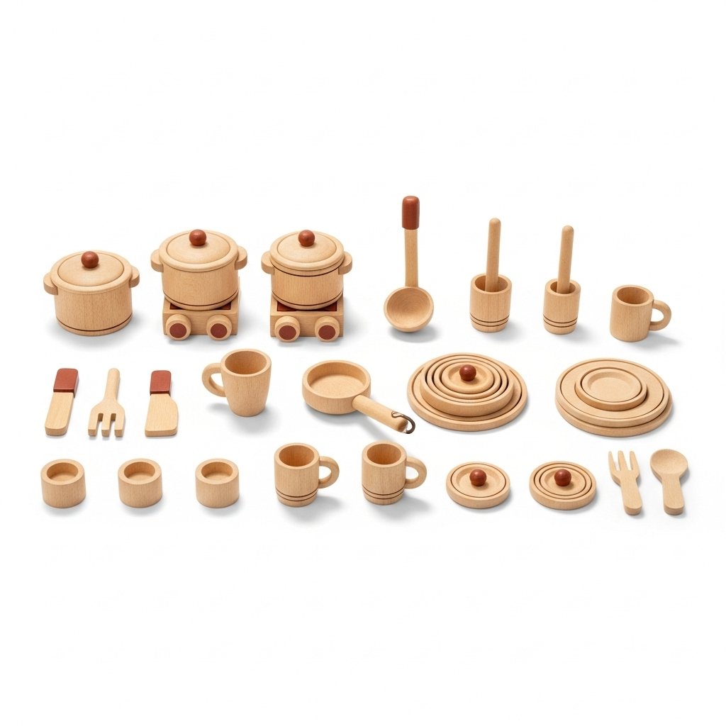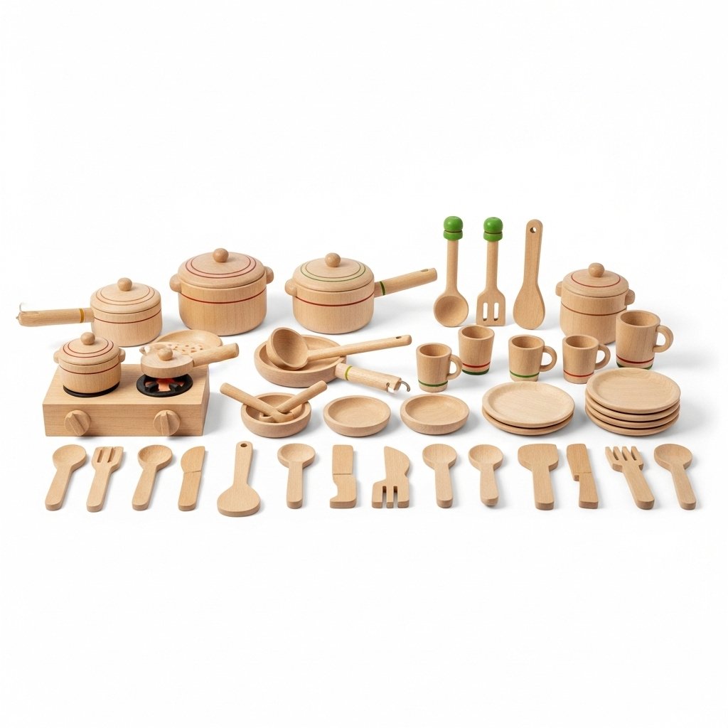 - Superb organic wooden kitchen toy set