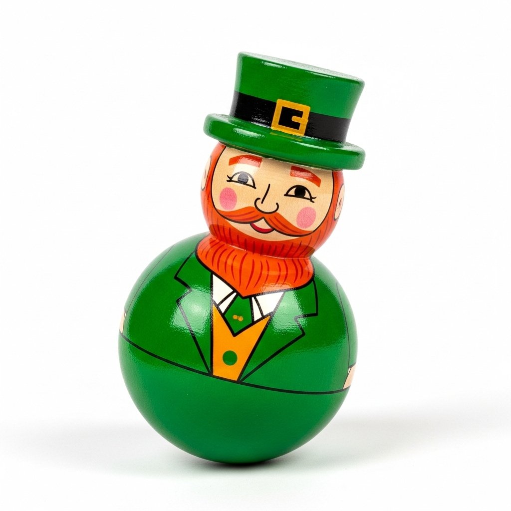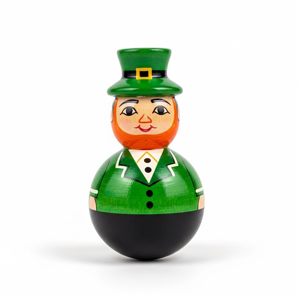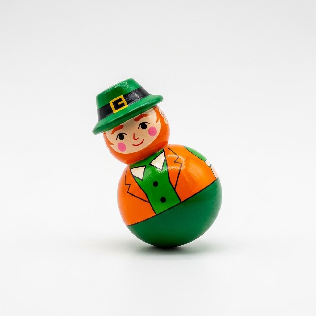 - Handmade wooden roly-poly toy, leprechaun-inspired design