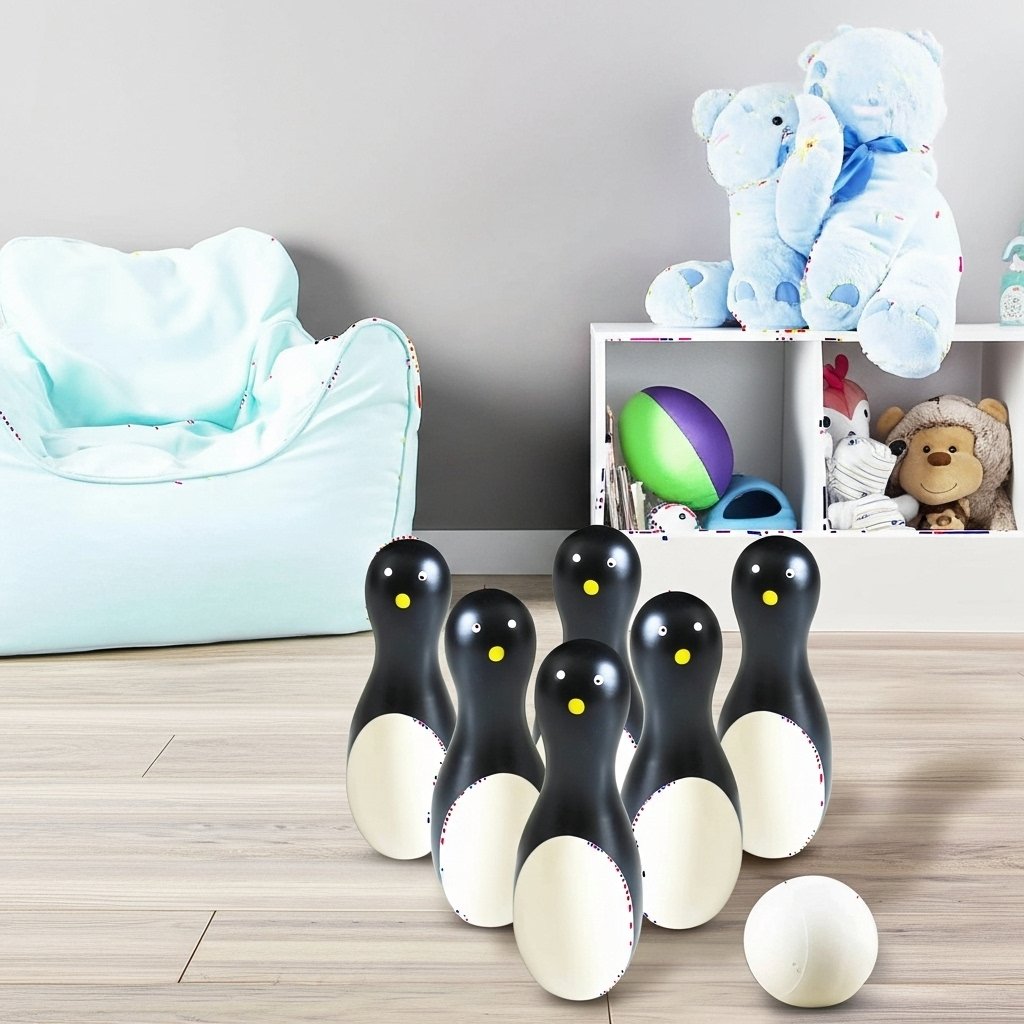 The penguin-inspired roly-poly and bowling pins look cute. They attract kids’ attention and make them curious about the game. The game encourages hand-eye coordination. Kids also learn how to balance and develop refined sensory motor skills through these games.
