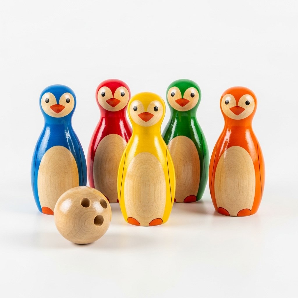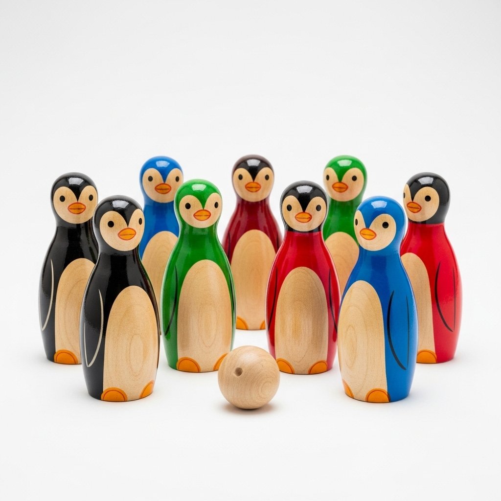 - Themed after penguins wooden bowling pins