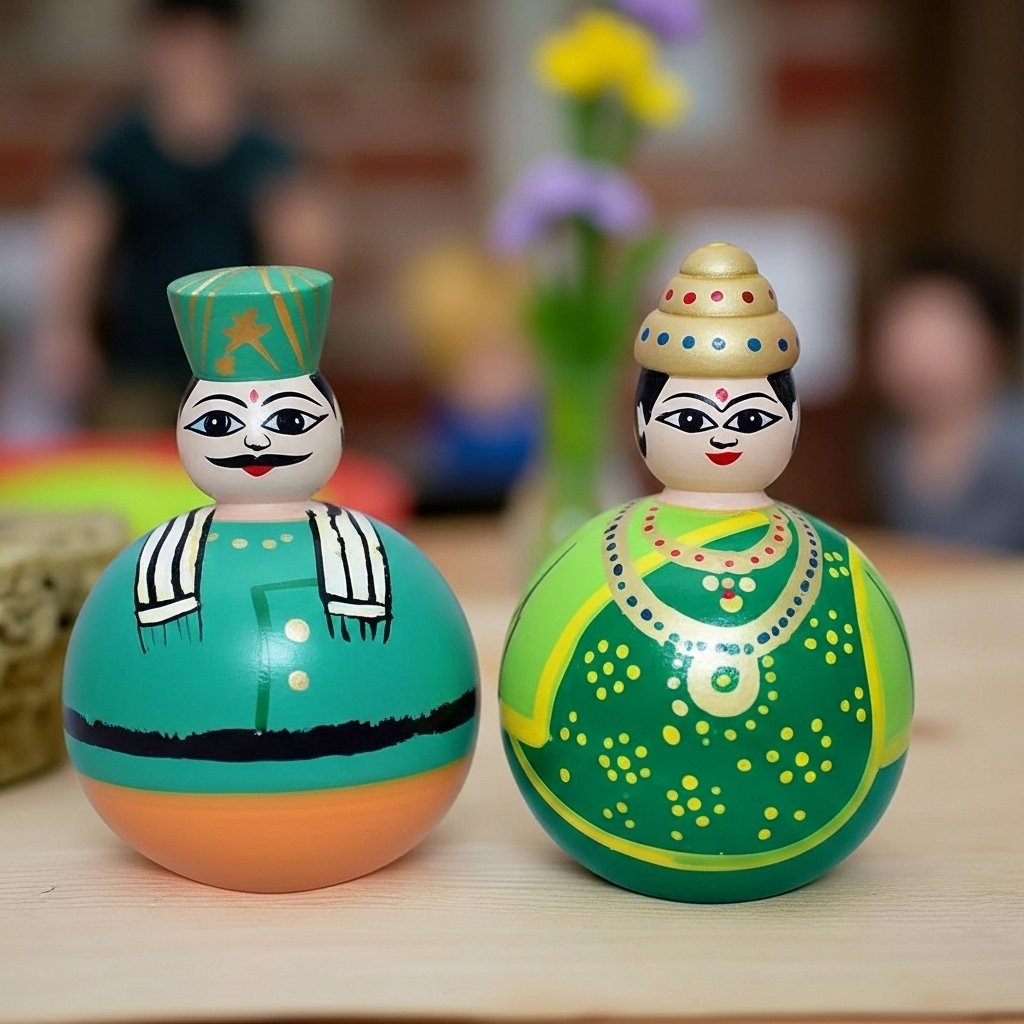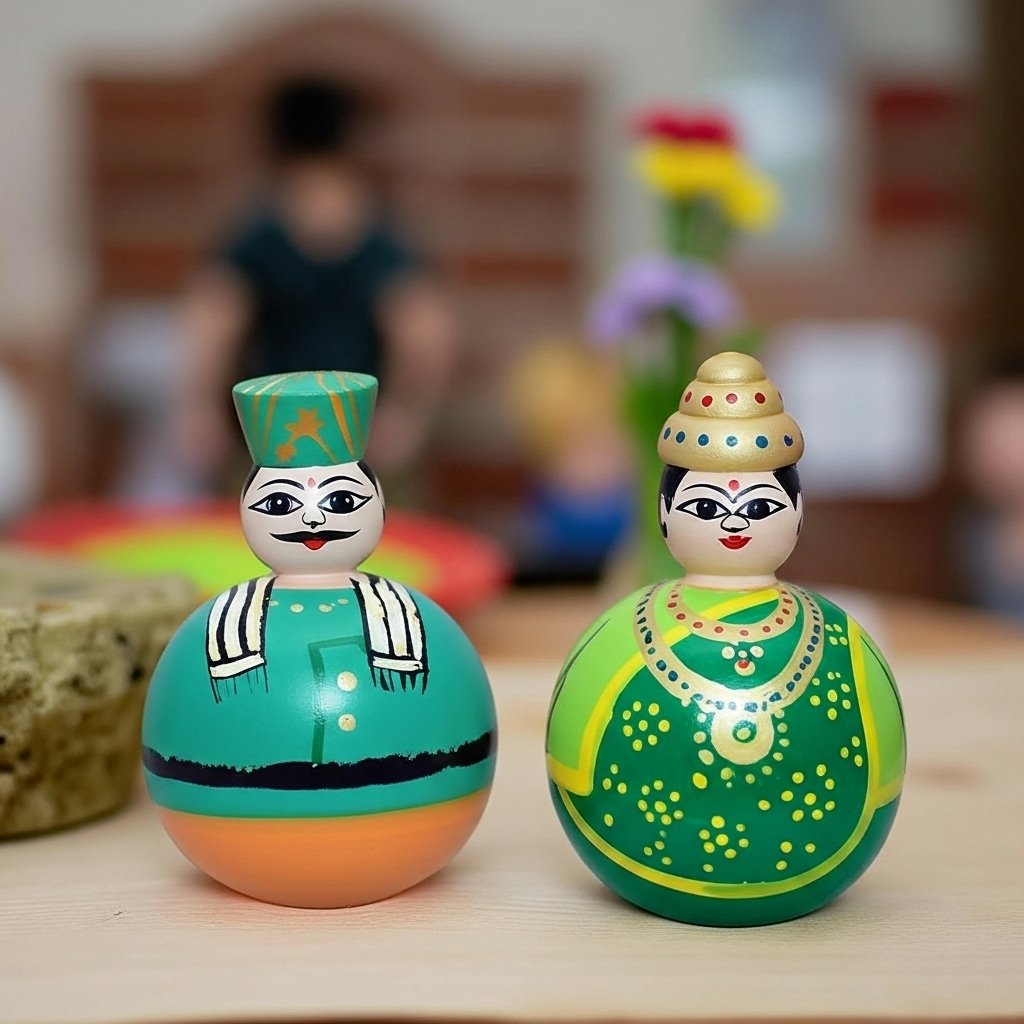The Channapatna wooden toy doll characters are kids’ favorites. Kids love the vibrant color and imagination-based playing activities. It supports cultural history as well.