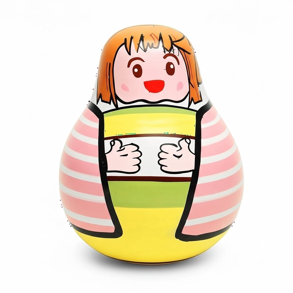 The Channapatna wooden doll is cute with a heavy bottom. The doll is brightly colored. Babies learn early balance and focus while playing with this roly-poly tumbler. It comes as a single wooden doll.