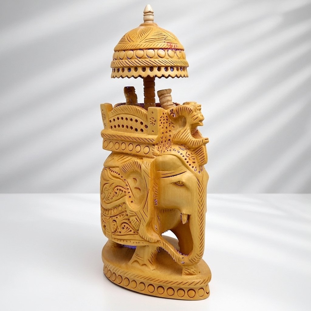 Celebrate Indian art at its finest with Royal Wooden Elephant Ambari – Indian Handcrafted Showpiece bringing homes premium traditional beauty. This masterpiece spends hours in the hands of expert artisans who create an intricately detailed ambari (royal seat) alongside traditional carvings that symbolize traditional Indian artistic excellence.