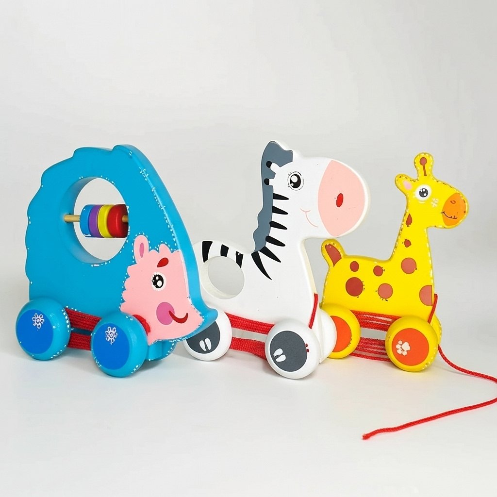 Enliven playtime through the Wooden Animal Pull-Along Toys – Cartoon Set for Kids (Pack of 3). These lovely three-pull toys of wood are hand-made from natural wood before being coated with bright non-toxic paint drops. Every animal comes with endearing cartoon decorations and fast wheels together with user friendly edges where children can safely use their hands.